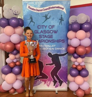 Orla won 1st place for Junior Song & Dance at the City of Glasgow TDCI Championships. Orla is also currently in panto rehearsals for Jock and the Beanstalk at the Pavillion in Glasgow as a junior ensemble dancer.